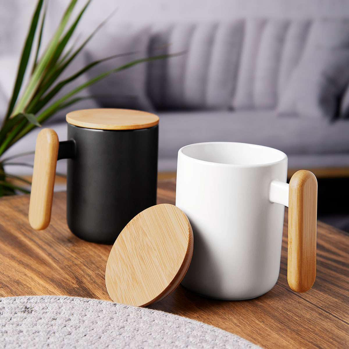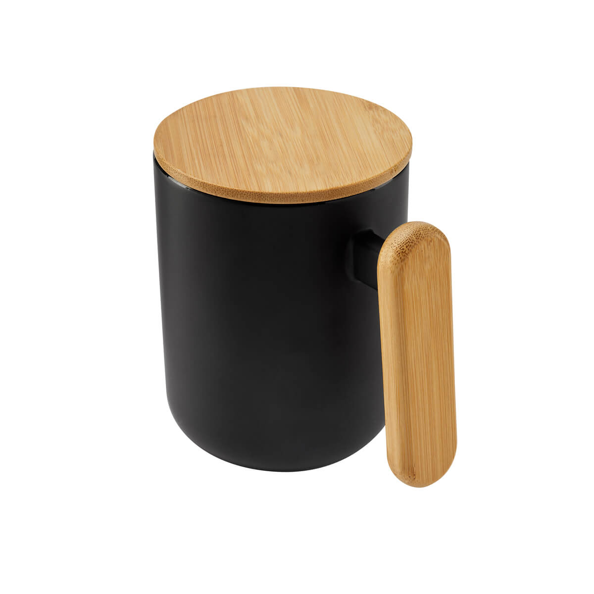 Taza de cerámica terminado mate. Incluye asa y tapa de bambú. El bambú es un producto natural el cual puede presentar variaciones en tonalidades y vetas. – TAZ 060
