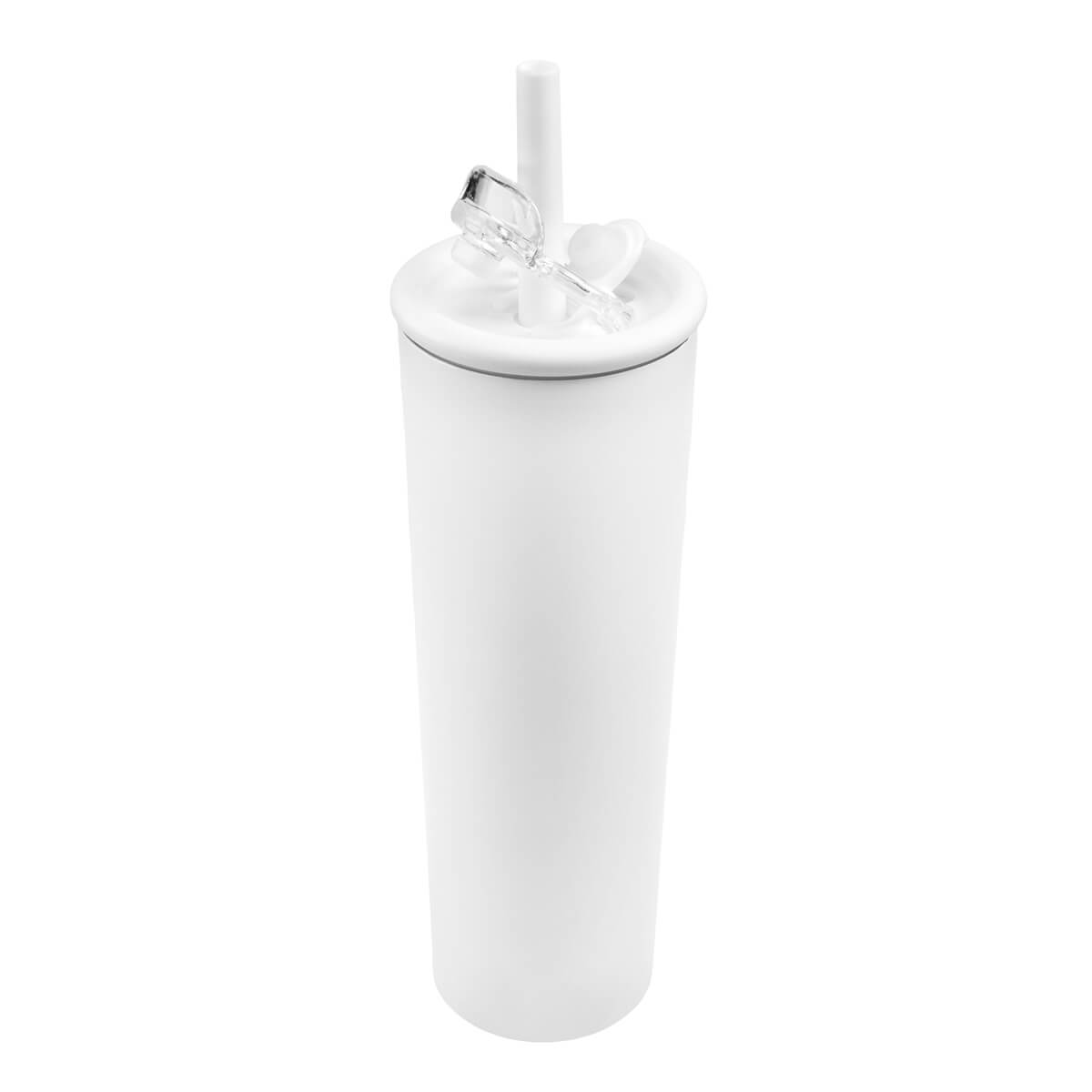 Termo doble pared. Cerrado al vacío. Pared interna y externa de acero inoxidable. Terminado rugoso que facilita su agarre. Tapa de plástico con cierre de rosca que le aporta mayor seguridad. Cuenta con dos funcionalidades en la tapa, boquilla para beber con sobre tapa push y ranura para popote con sobre tapa adicional. Popote con boquilla de silicón, avanzado sistema de cierre anti derrames. Mantiene tus bebidas calientes hasta 6 hrs. y frías hasta por 8 hrs. Capacidad de 25 Oz. Incluye caja individual. – TMPS 266