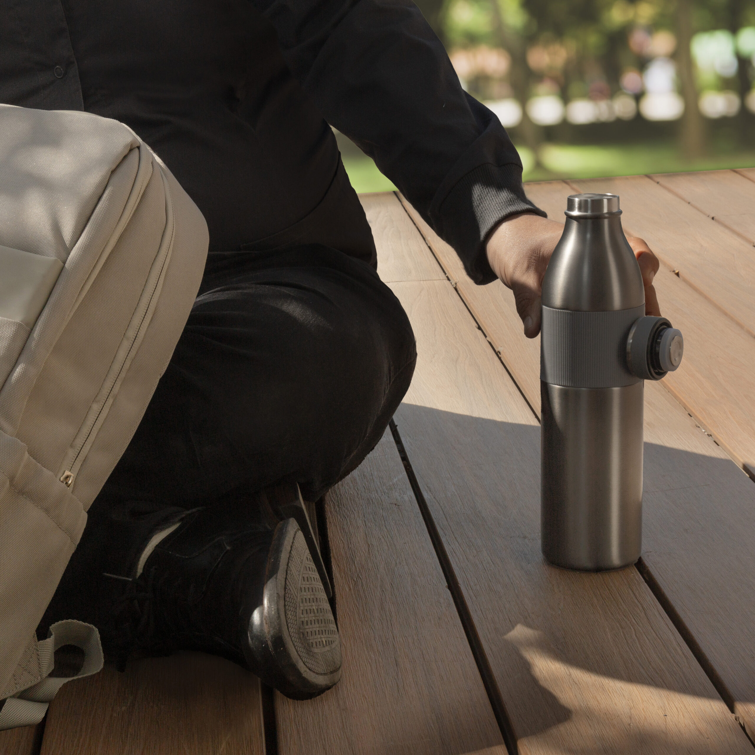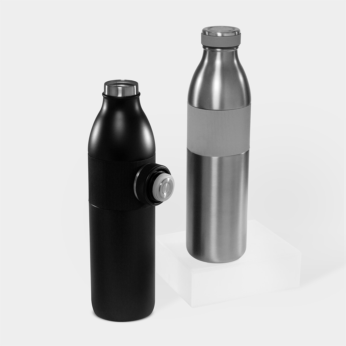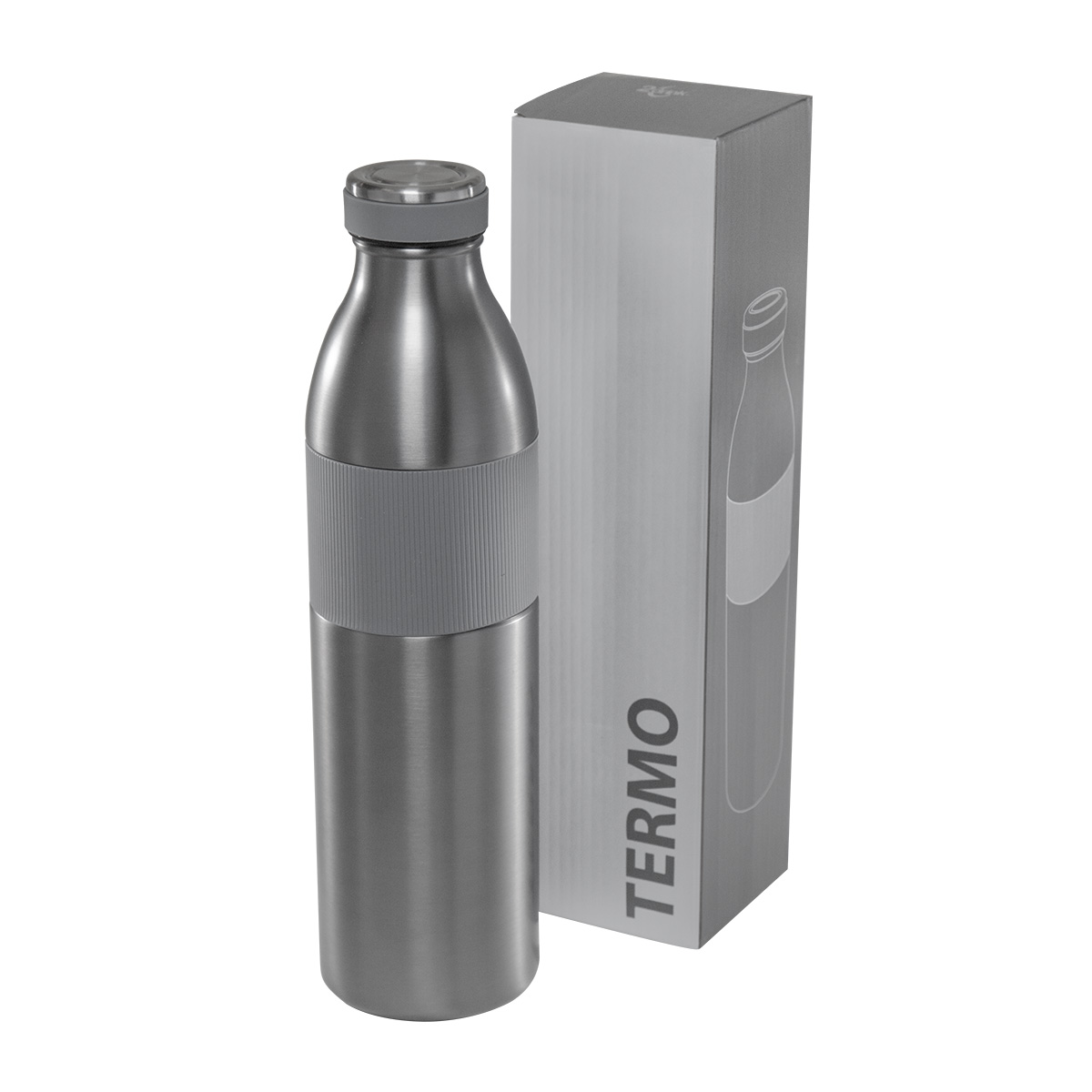 Doble pared. Cerrado al vacío. Pared interna y externa acero inoxidable. Tapa con sistema de rosca imantada. Banda de silicón texturizada antiderrapante. Mantiene temperatura caliente 8 hrs y temperatura fría 12 hrs aproximadamente. Incluye caja individual. – TMPS 198
