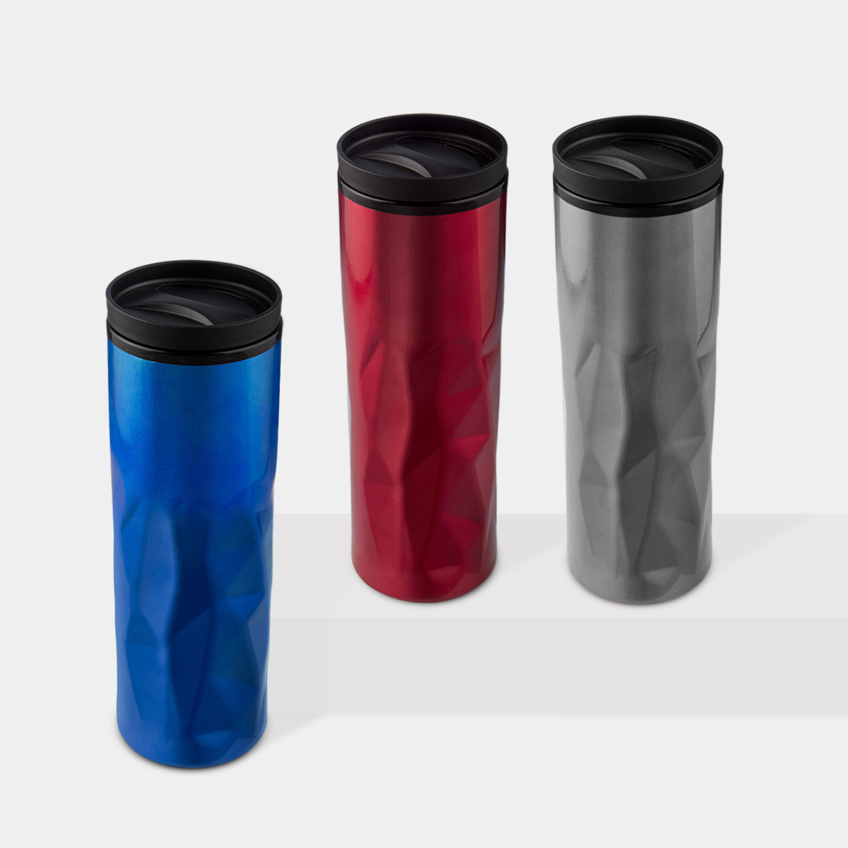 Doble pared. Pared interna plástico, pared externa acero inoxidable. Cuerpo prismático. Tapa de plástico con válvula de seguridad. Incluye caja individual. – TMPS 47