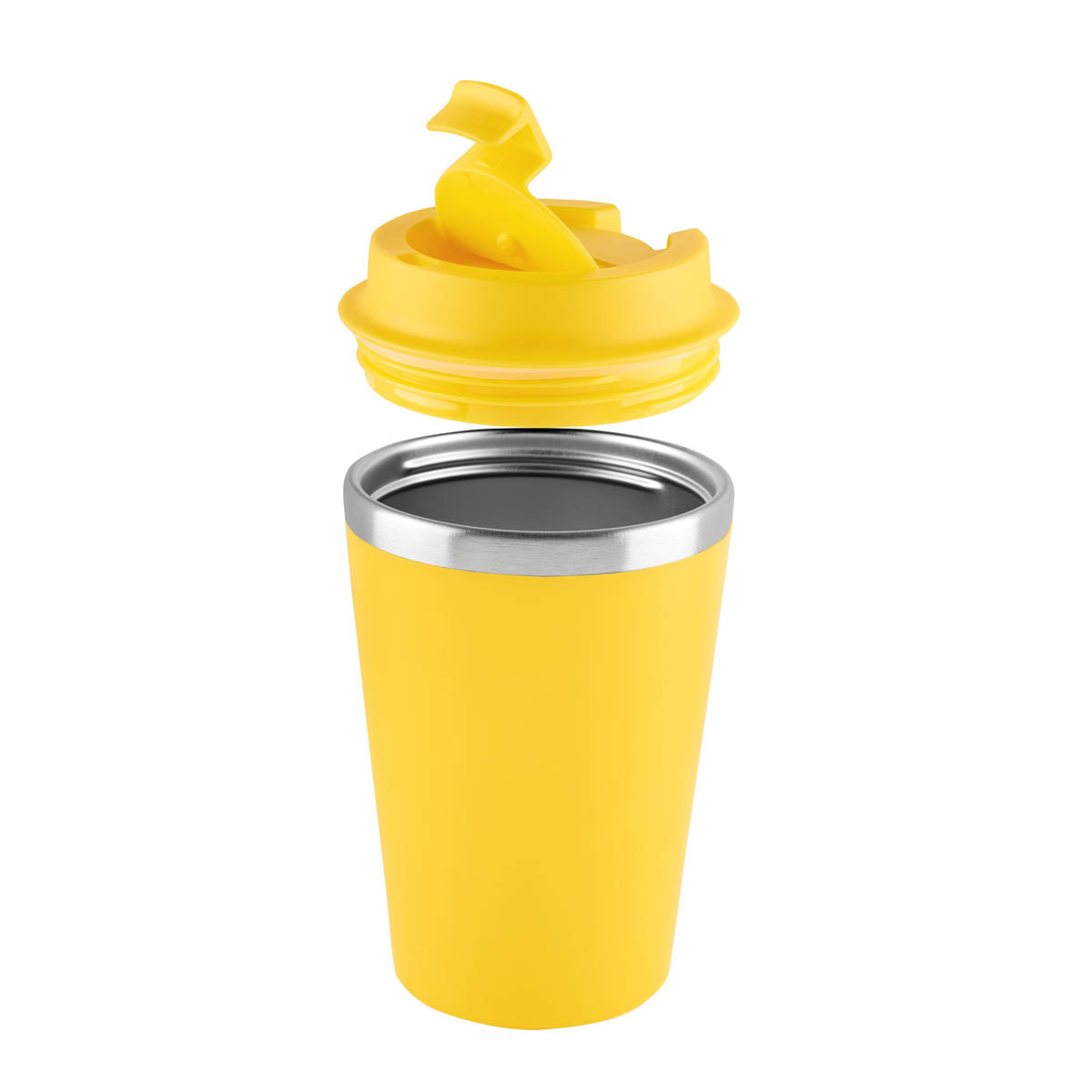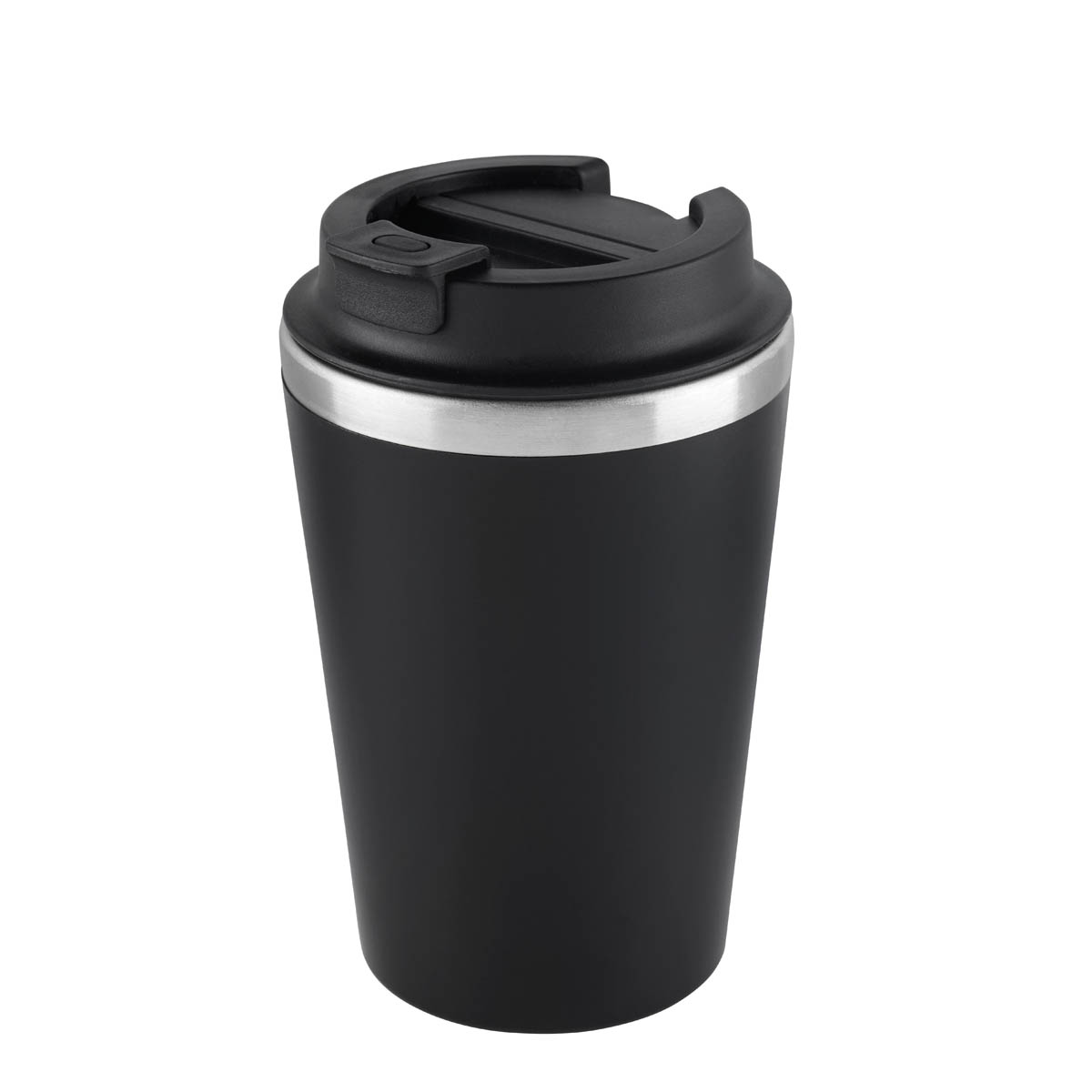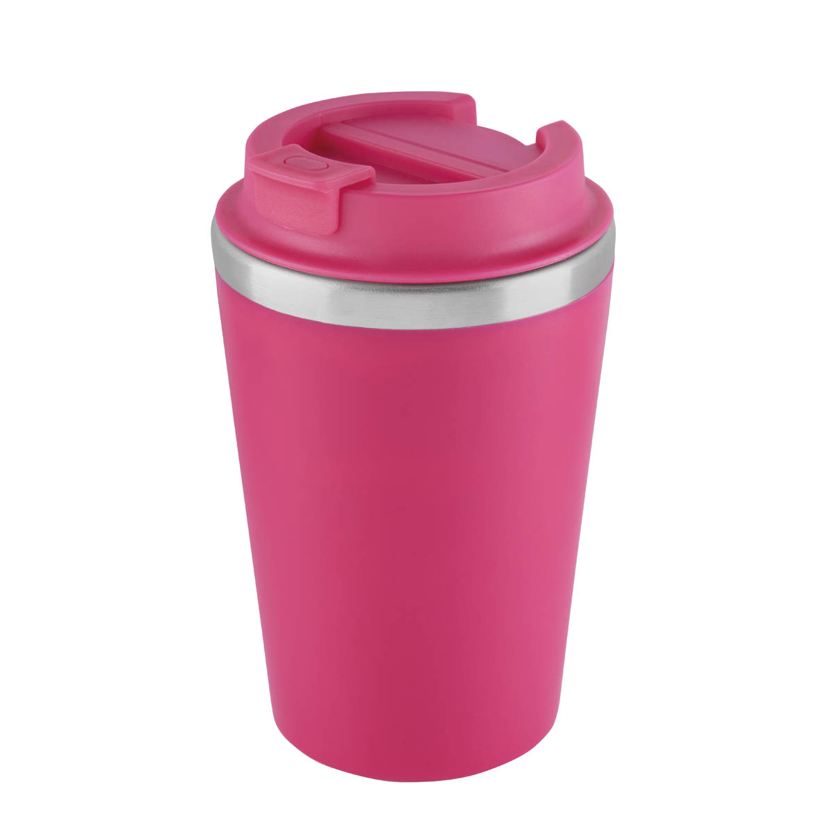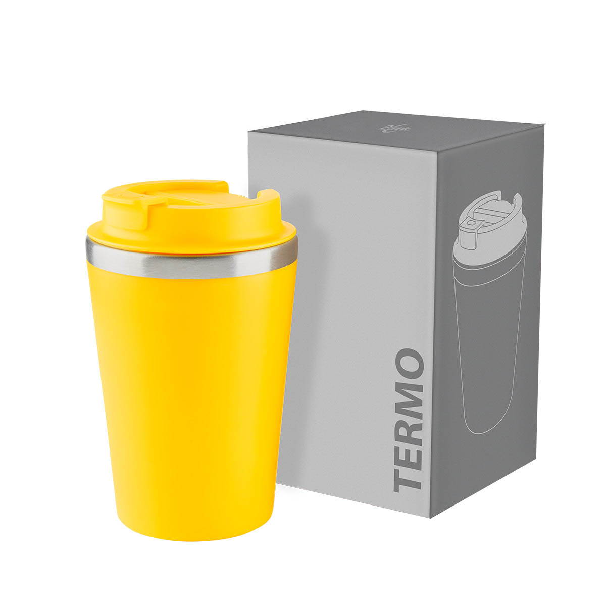 Termo doble pared. Pared interna de acero inoxidable y externa de plástico. Tapa con sistema de rosca que garantiza un cierre hermético. Sobretapa con sistema push que previene derrames. Su elegante detalle metálico, rompe con la monocromía y añade un toque de distinción. Capacidad de 12 Oz. Base de 7 cm de diámetro. Incluye caja individual. – TMPS 231