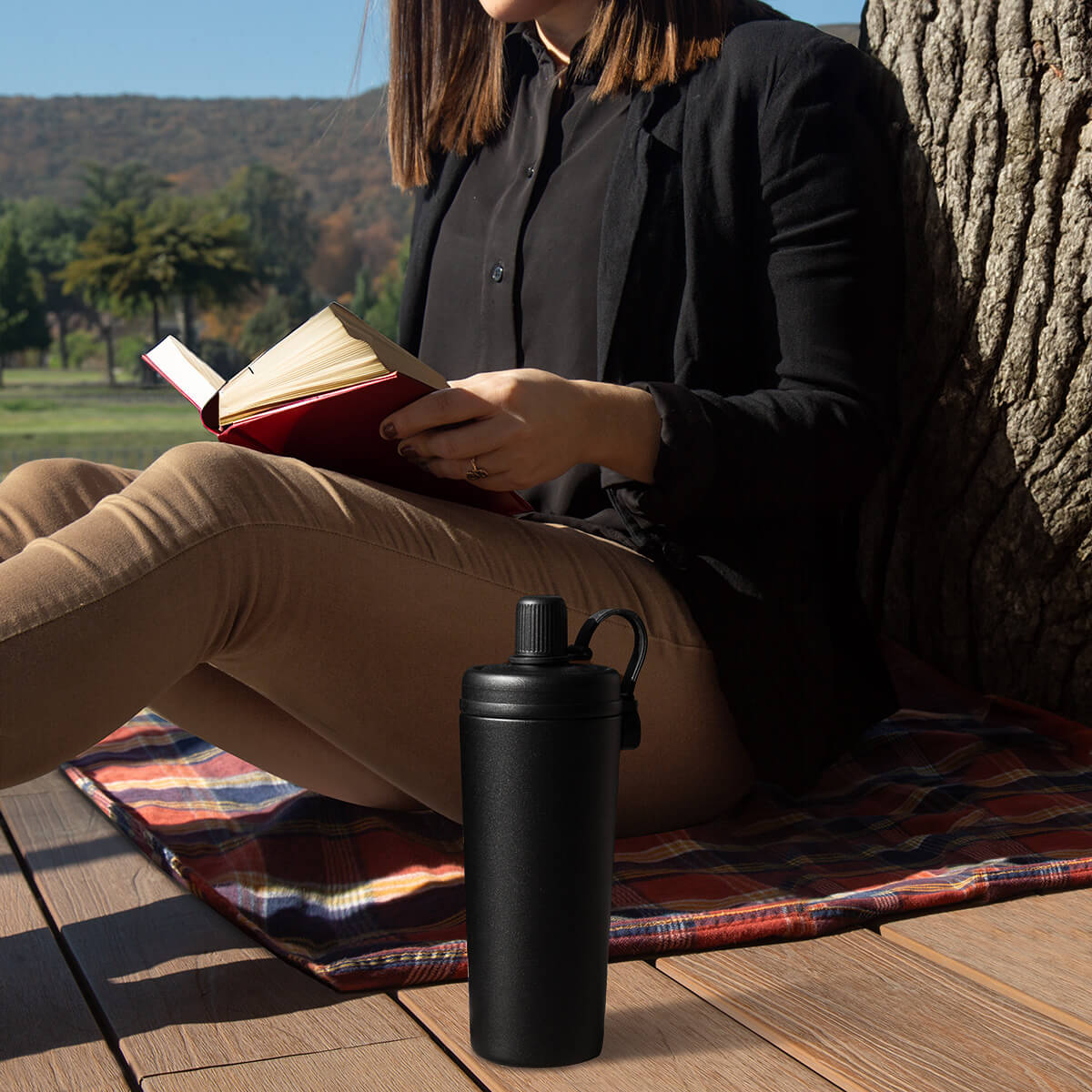Doble pared. Cerrado al vacío. Pared interna y externa acero inoxidable. Tapa de plástico con sistema de rosca y sobre tapa para popote con sistema de rosca imantada para evitar que quede suelta. Popote de plástico incluido. Manga de silicón antiderrapante en la base. Mantiene temperatura caliente 8 hrs y temperatura fría 12 hrs aproximadamente. Caja individual incluida. – TMPS 202