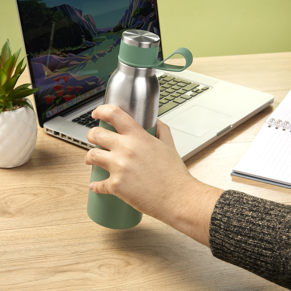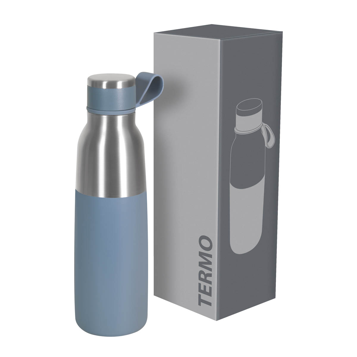 Termo doble pared. Cerrado al vacío. Pared interna y externa acero inoxidable. Tapa con sistema de rosca. Asa de silicón que permite llevarlo a todos lados. Mantiene temperatura caliente 6 hrs y temperatura fría 8 hrs aproximadamente. Incluye caja individual. – TMPS 218