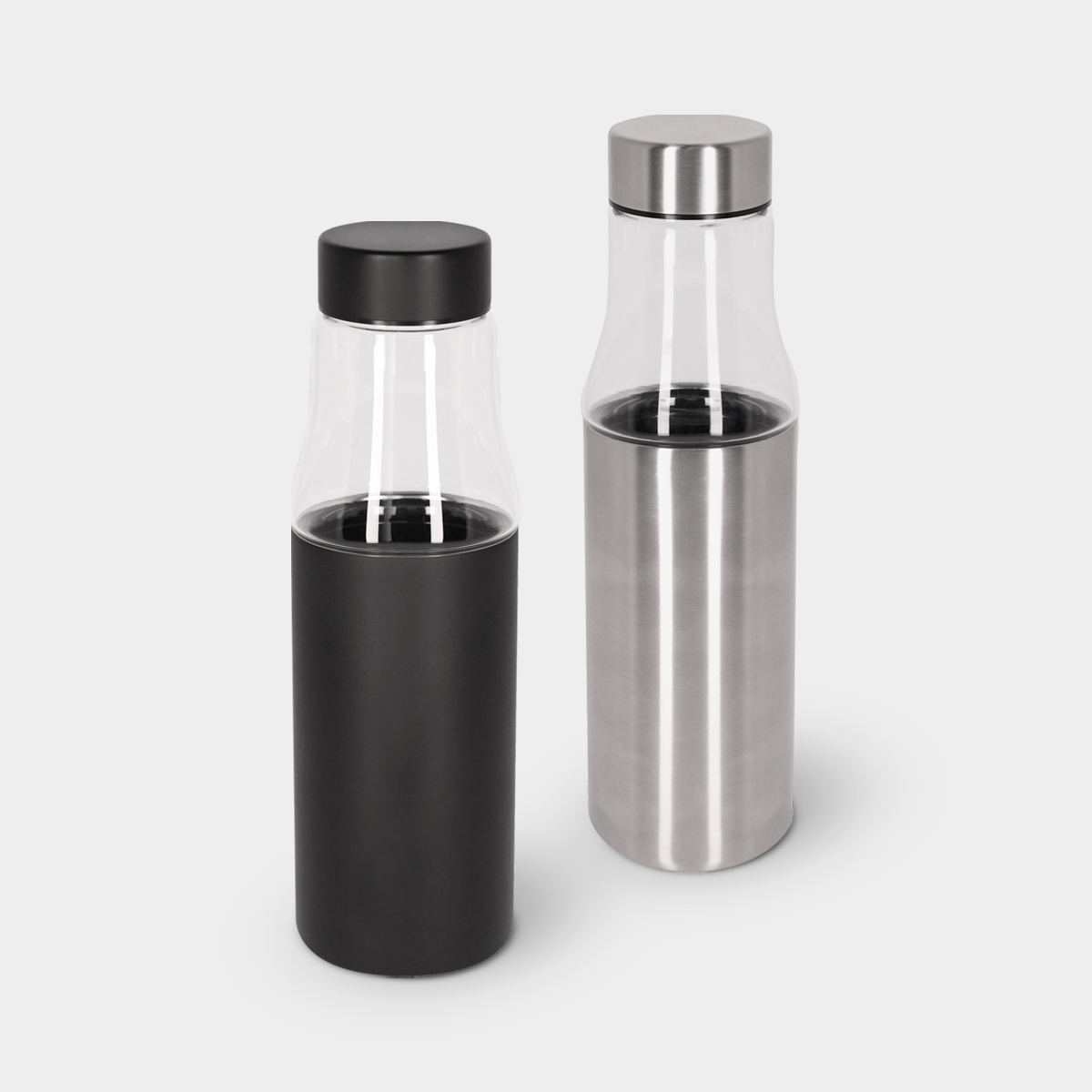 Termo de vidrio doble pared con base exterior de acero inoxidable desprendible. Cerrado al vacío para conservar el frío o calor de la bebida. Tapa de metal de rosca. La base desprendible puede ser utilizada como vaso. Incluye caja individual. – TMPS 158