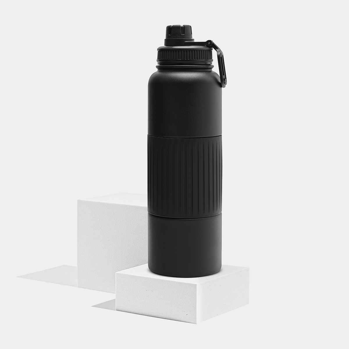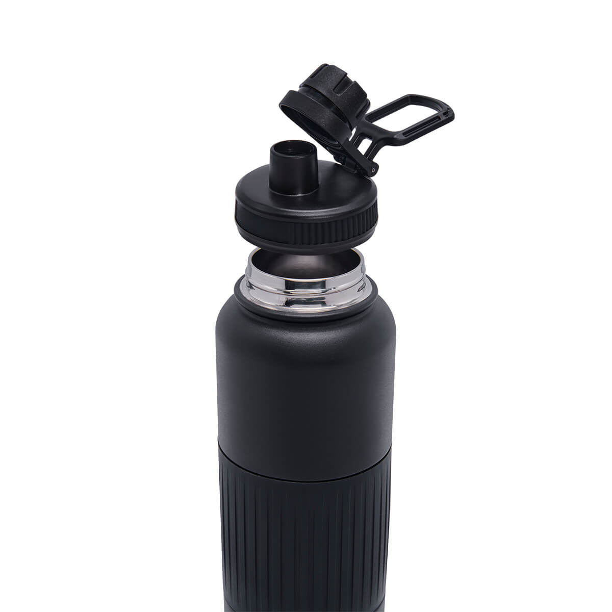 Doble pared. Cerrado al vacío. Pared interna y externa acero inoxidable. Cuenta con manga de silicón. Terminado tipo rugoso. Tapa de plástico con doble boquilla y asa. Mantiene temperatura caliente 6 hrs y temperatura fría 8 hrs aproximadamente. Incluye caja individual. – TMPS 175