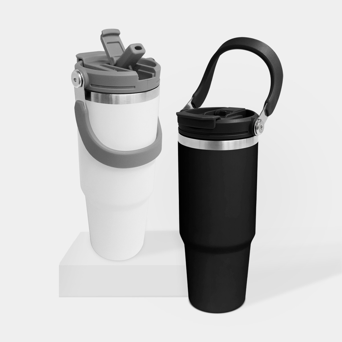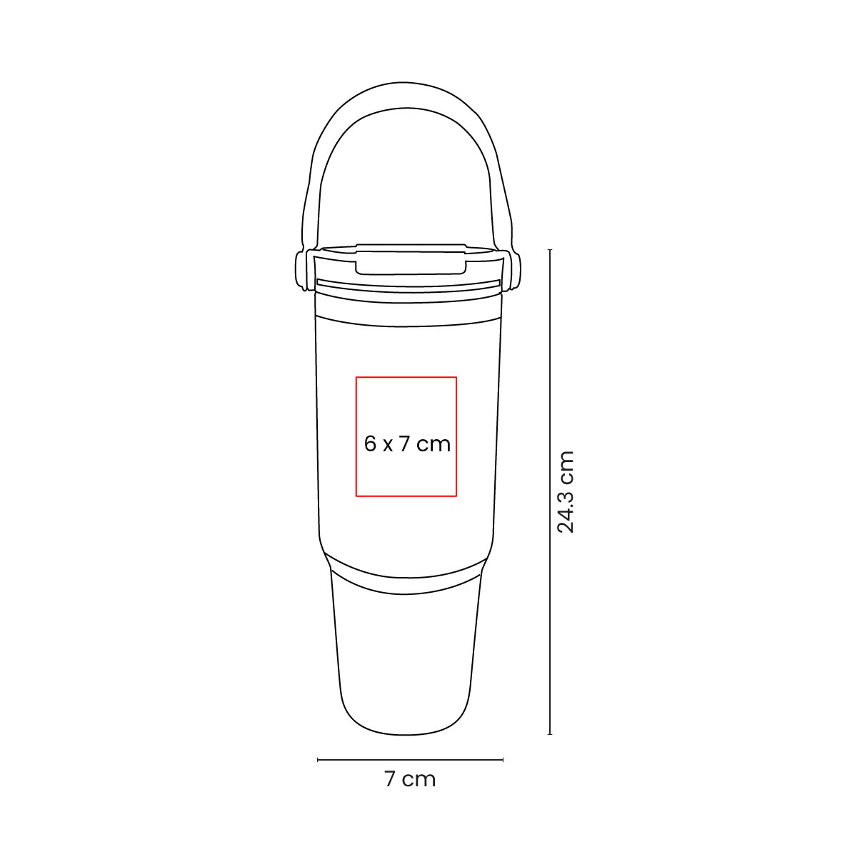 Doble pared. Cerrado al vacío. Pared interna y externa de acero inoxidable. Tapa con asa plegable de plástico con cierre de rosca. Sobretapa de push y popote retráctil. Mantiene temperatura caliente 6 hrs y temperatura fría 8 hrs aproximadamente. Incluye caja individual. – TMPS 197