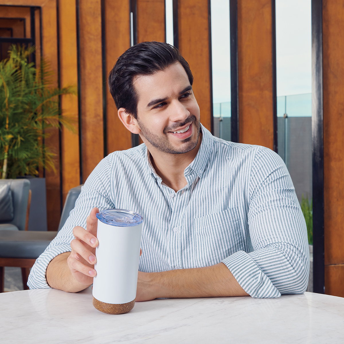 Doble pared. Cerrado al vacío. Pared interna y externa acero inoxidable. Base de corcho. Incluye tapa de plástico con válvula de seguridad. Mantiene temperatura caliente 6 hrs y temperatura fría 8 hrs aproximadamente. Incluye caja individual. – TMPS 154