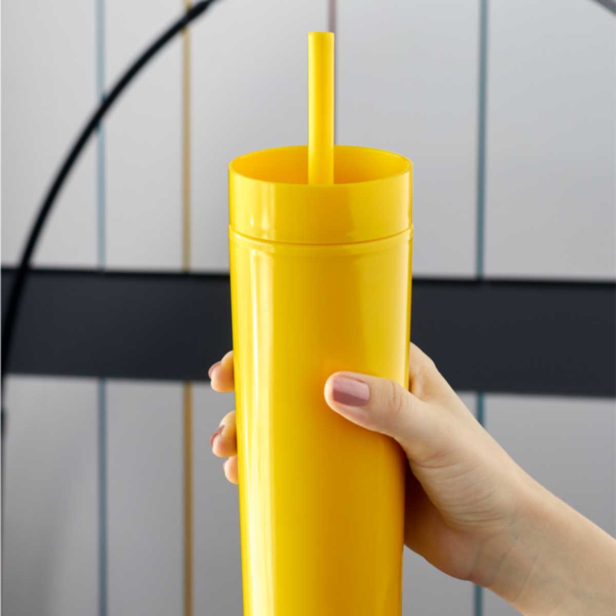 Doble pared. Pared interna y externa de plástico. Tapa de plástico con cierre a presión. Incluye popote y caja individual. – TMPS 178