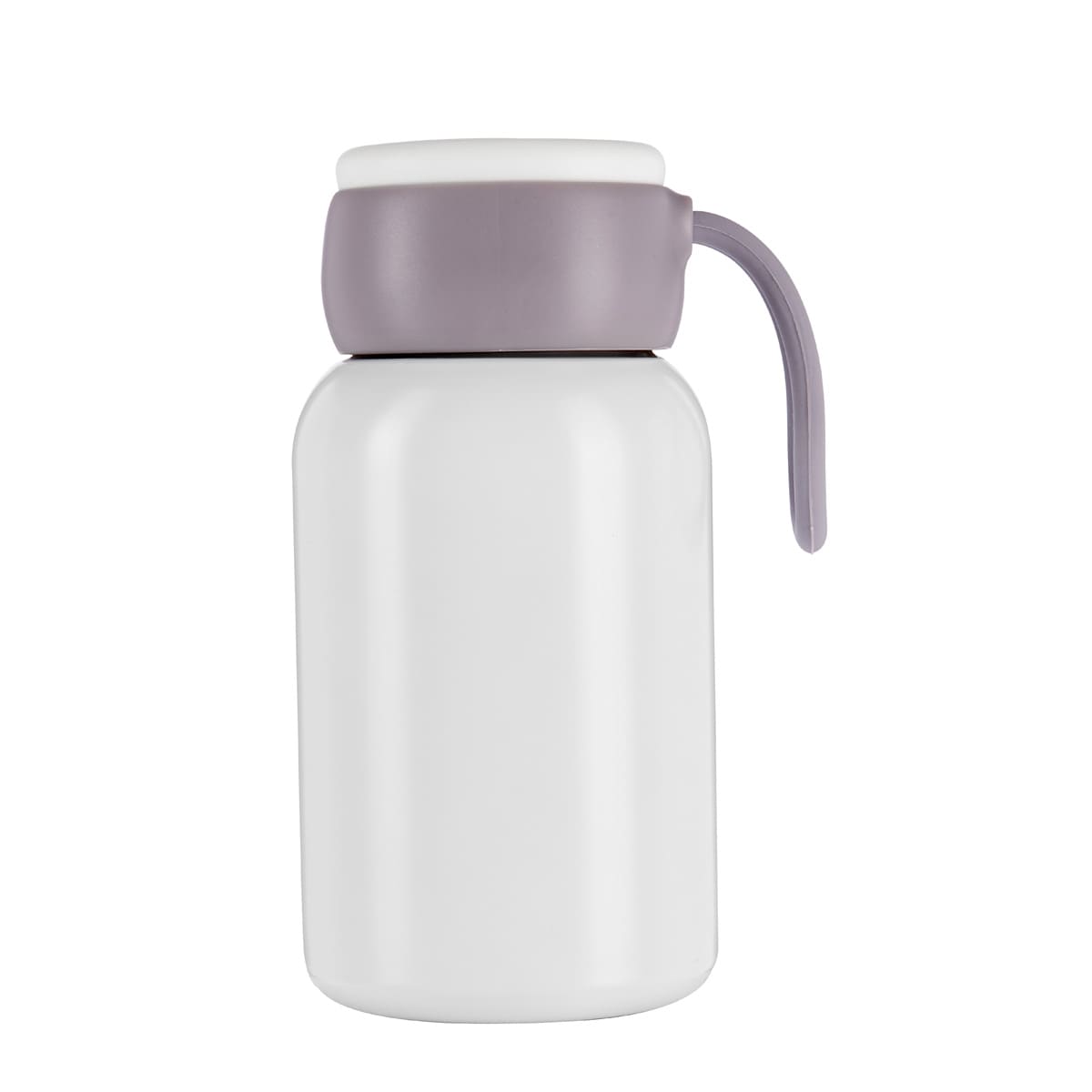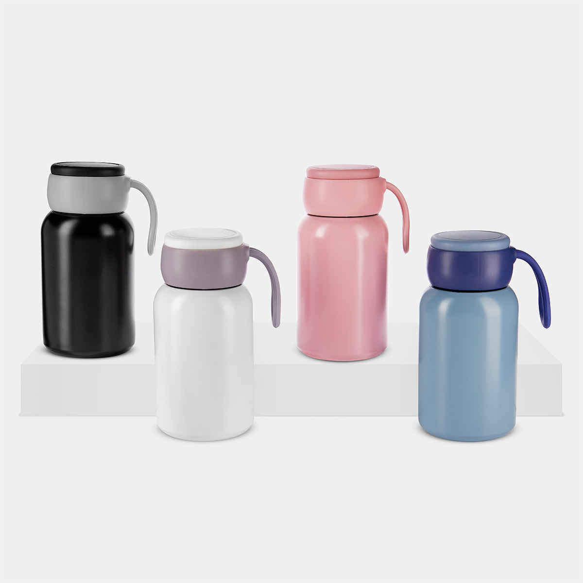 Doble pared. Cerrado al vacío. Pared interna y externa de acero inoxidable. Tapa de plástico bitono con sistema de rosca y asa de silicón. Mantiene temperatura caliente 6 hrs y temperatura fría 8 hrs aproximadamente. Incluye caja individual. – TMPS 191
