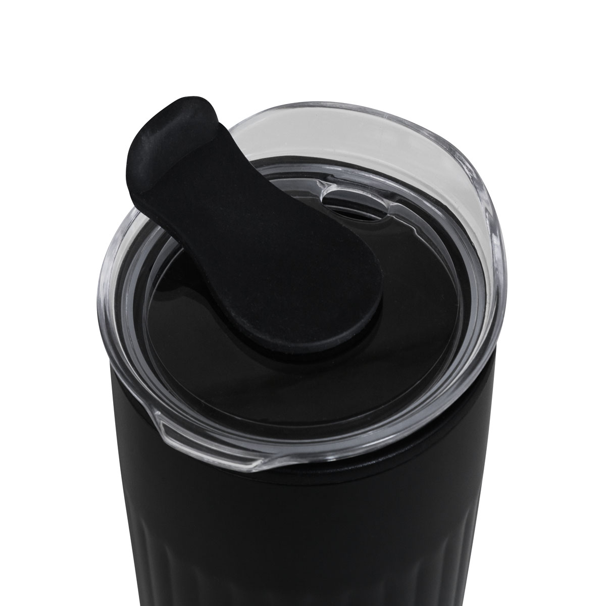 Doble pared. Pared interna de plástico, pared externa de acero inoxidable. Tapa de plástico con sistema de push. Sobre tapa de silicón movible. Incluye caja individual – TMPS 206