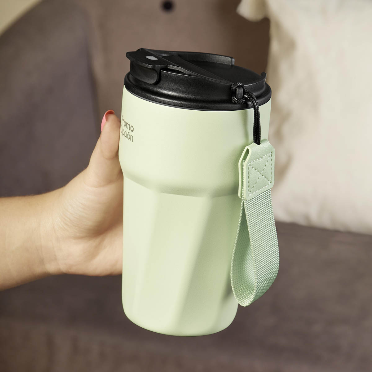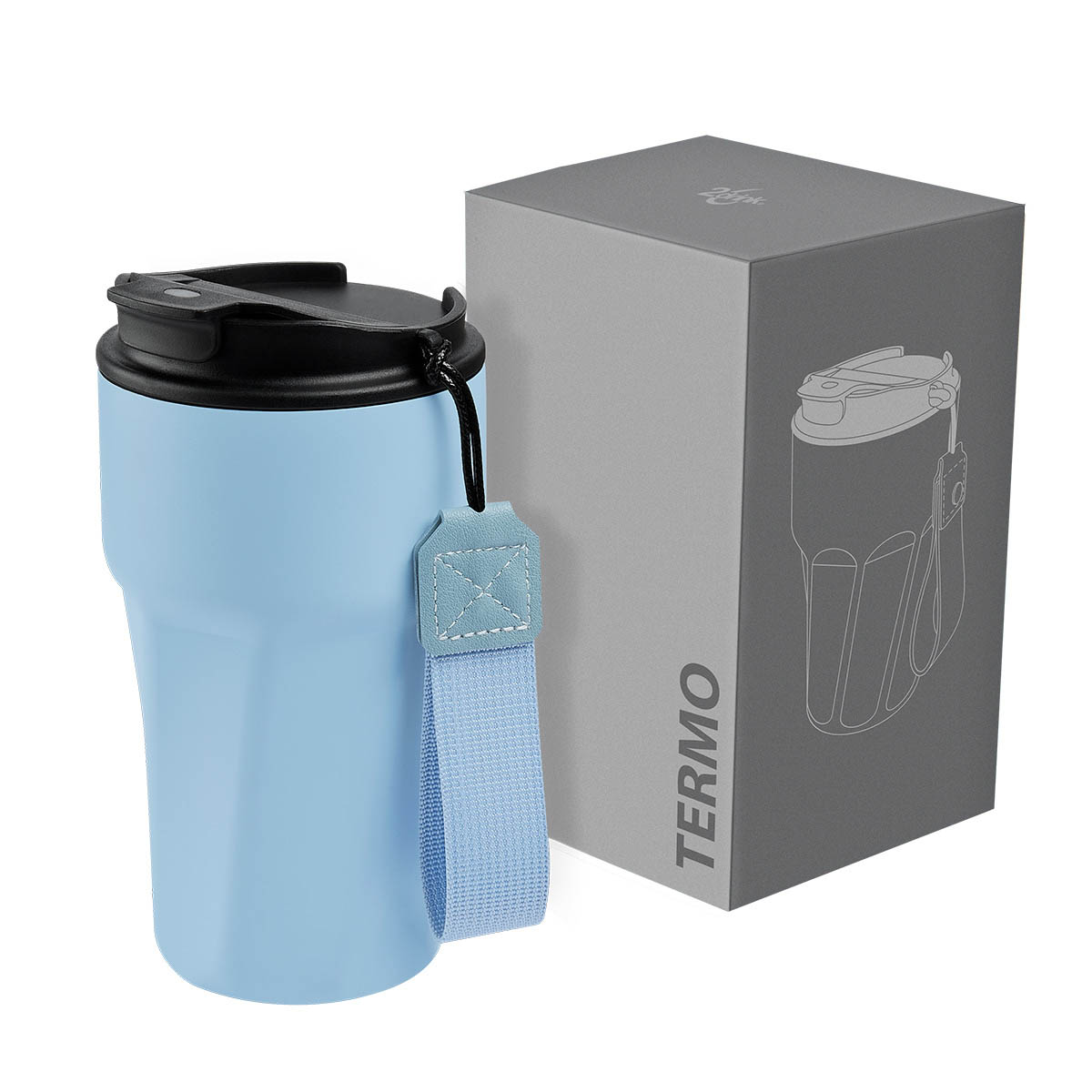 Termo doble pared. Cerrado al vacío. Pared interna y externa de acero inoxidable. Terminado rugoso tipo powder. Tapa de plástico con cierre de rosca, sobretapa con sistema push para evitar derrames. Además, cuenta con un asa de poliéster para una cómoda transportación. Mantiene la temperatura caliente por 8 hrs y temperatura fría por 12 hrs. Capacidad de 15 Oz. Base de 7.2 cm de diámetro. Incluye caja individual. – TMPS 229