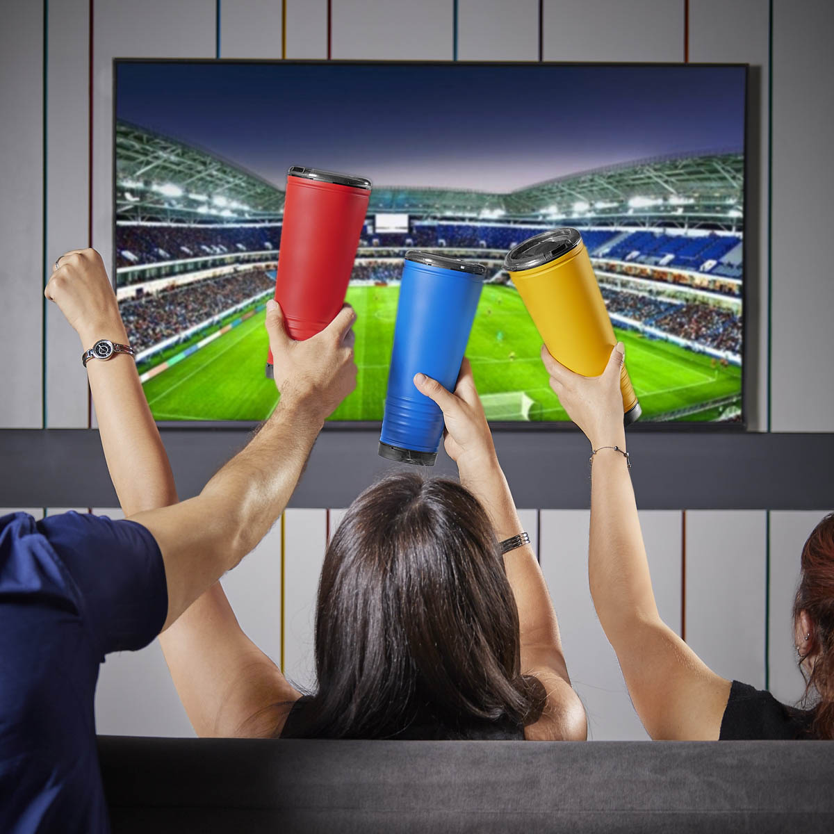 ¡Lleva la emoción de los eventos deportivos al siguiente nivel! Termo equipado con una boquilla especial en la tapa que realiza una doble función; como trompeta, para animar tu evento favorito y al mismo tiempo, disfrutar de tu bebida preferida. Termo doble pared. Pared interna de plástico y externa de acero inoxidable. Tapa de plástico con sistema push y válvula de seguridad. Capacidad de 24 Oz. Base de 7 cm de diámetro. Incluye caja individual. – TMPS 234