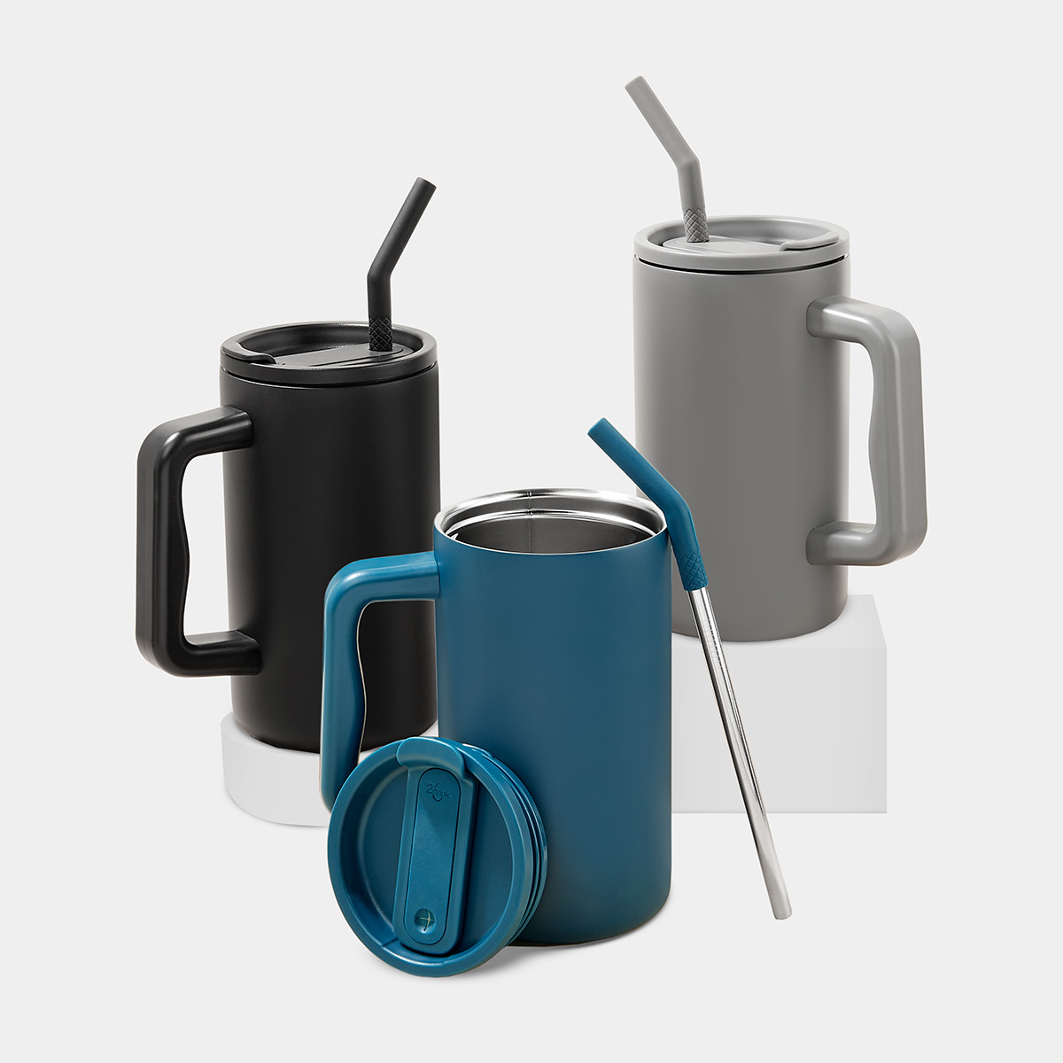 Doble pared. Cerrado al vacío. Pared interna y externa acero inoxidable. Tapa de plástico con cierre de rosca. Su diseño práctico con sobretapa giratoria de tres posiciones, que permite disfrutar de tus bebidas de 2 maneras diferentes; ya sea por una boquilla tradicional o por medio de un popote metálico con boquilla de silicón incluido. Asa de plástico con diseño ergonómico, que ayuda a transportar su bebida con mayor facilidad. Mantiene la temperatura caliente por 7 hrs y la temperatura fría por 24 hrs. Caja individual incluida. – TMPS 222