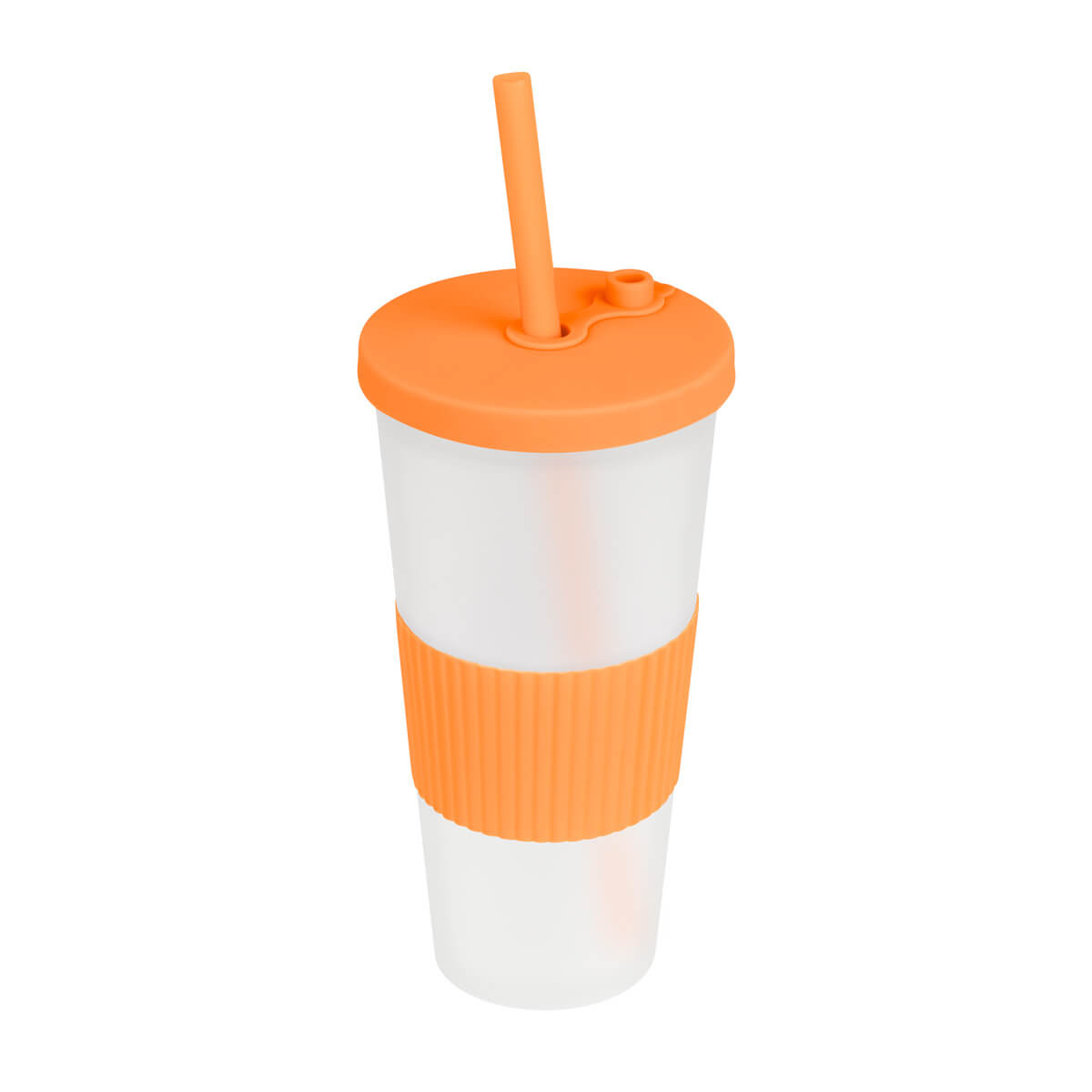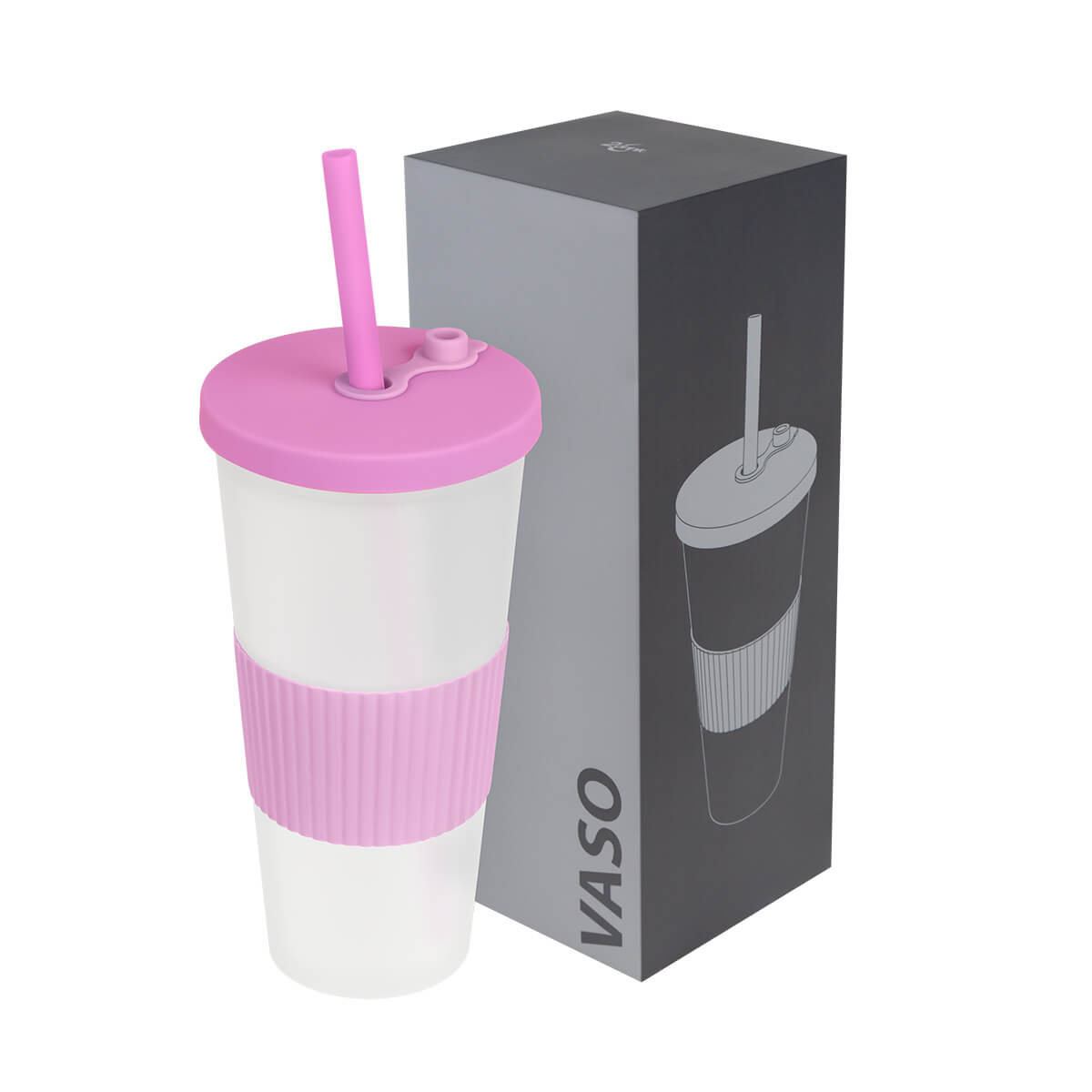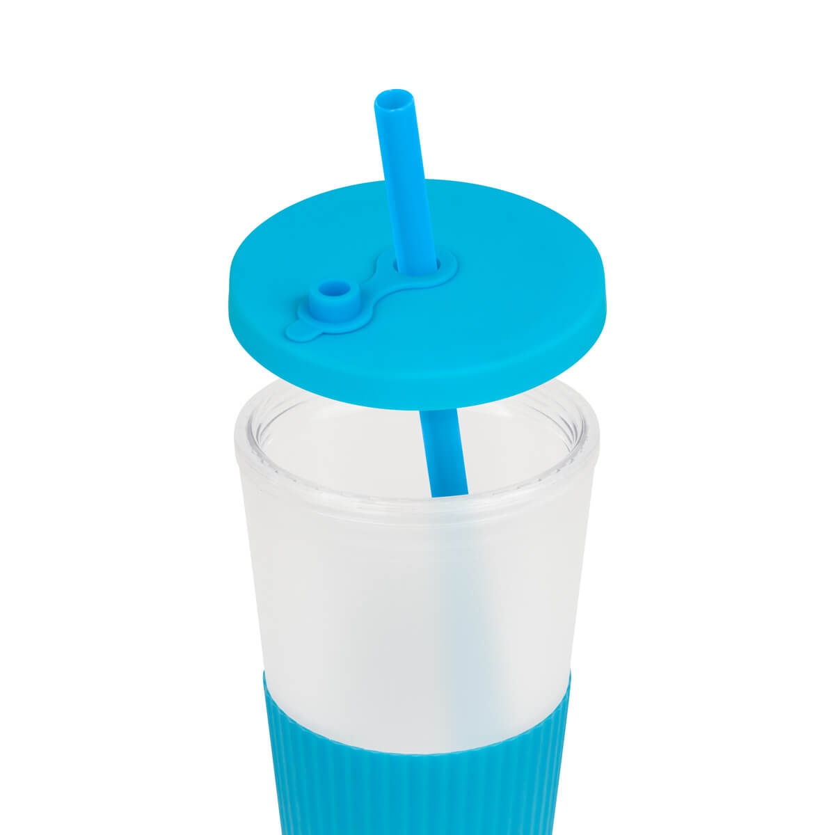 Vaso doble pared. Pared interna y externa de plástico. Tapa de plástico con sistema de rosca. Incluye popote. Cuerpo frosty con terminado suave. Su diseño con manga de silicón antideslizante garantiza un agarre cómodo y seguro. Capacidad 22 Oz. Base de 6.4 cm de diámetro. Caja individual incluida. – TMPS 253