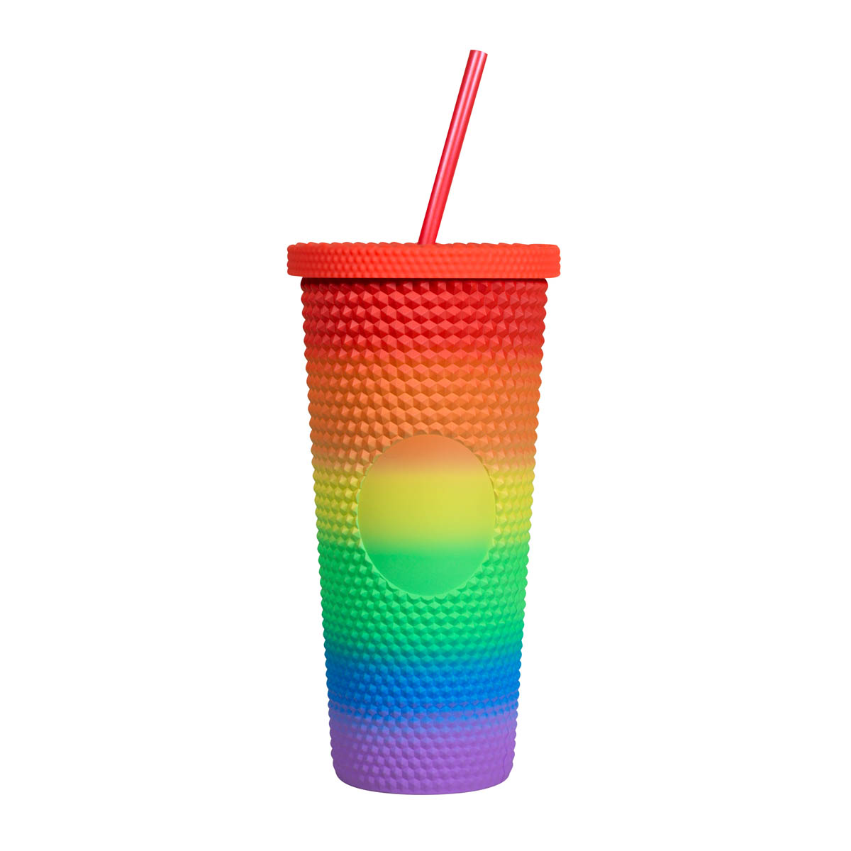 Doble pared. Pared interna y externa de plástico. Tapa de plástico con cierre de rosca. Terminado ruber y textura de picos. Capacidad 22 Oz. Base de 6.8 cm de diámetro. Incluye popote y caja individual. – TMPS 219